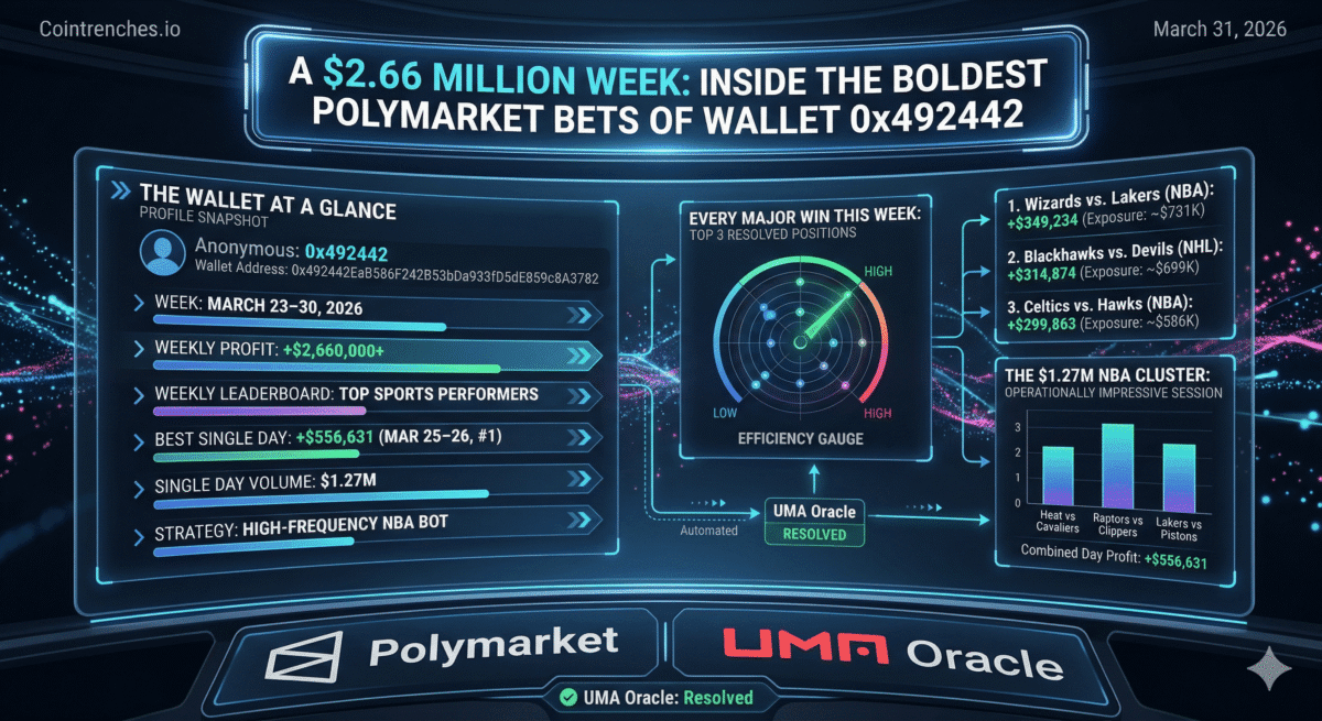 0x492442 Polymarket: +$2.66M This Week. Every Win Broken Down (March 23 – 30, 2026) TL;DR: Wallet 0x492442EaB586F242B53bDa933fD5dE859c8A3782 posted +$2.66M in…