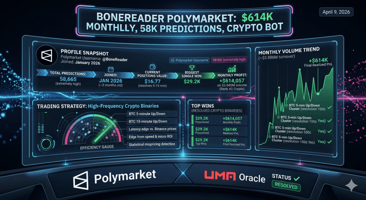 BoneReader Polymarket: $614K Monthly, 58K Predictions, Crypto Bot
