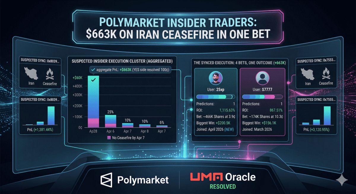 Polymarket Insider Traders: Four Wallets Made $663K on Iran Ceasefire Hours Before Trump Announced It. Four Polymarket insider trader wallets…