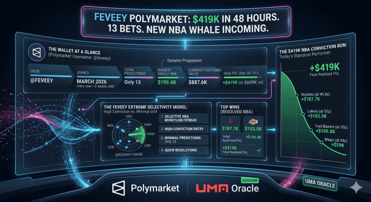 Feveey Polymarket: $419K Profit in 48 Hours. 13 Total Bets. $887K Still on the Table. TL;DR: @feveey joined Polymarket in…