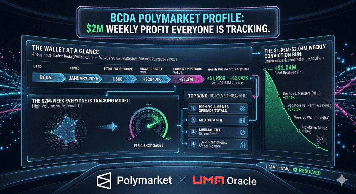 bcda Polymarket: $2M Weekly Profit, 1,668 Bets, Full Profile — the highest-prediction-count NBA trader currently tracked, for direct comparison against Countryside’s 637