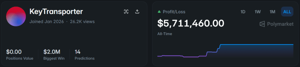 KeyTransporter Polymarket: $5.7M in 30 Days, 14 Trades